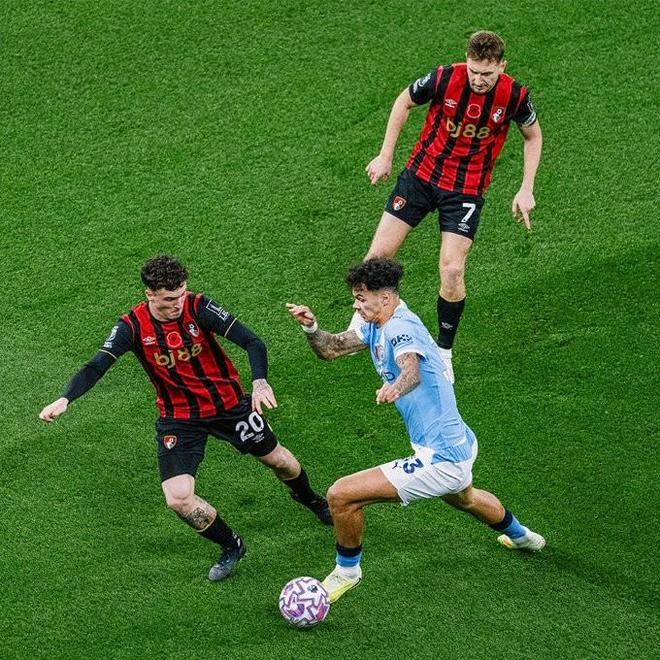 3-1取胜,曼城升至英超第二并送伯恩茅斯本赛季联赛第2场失利